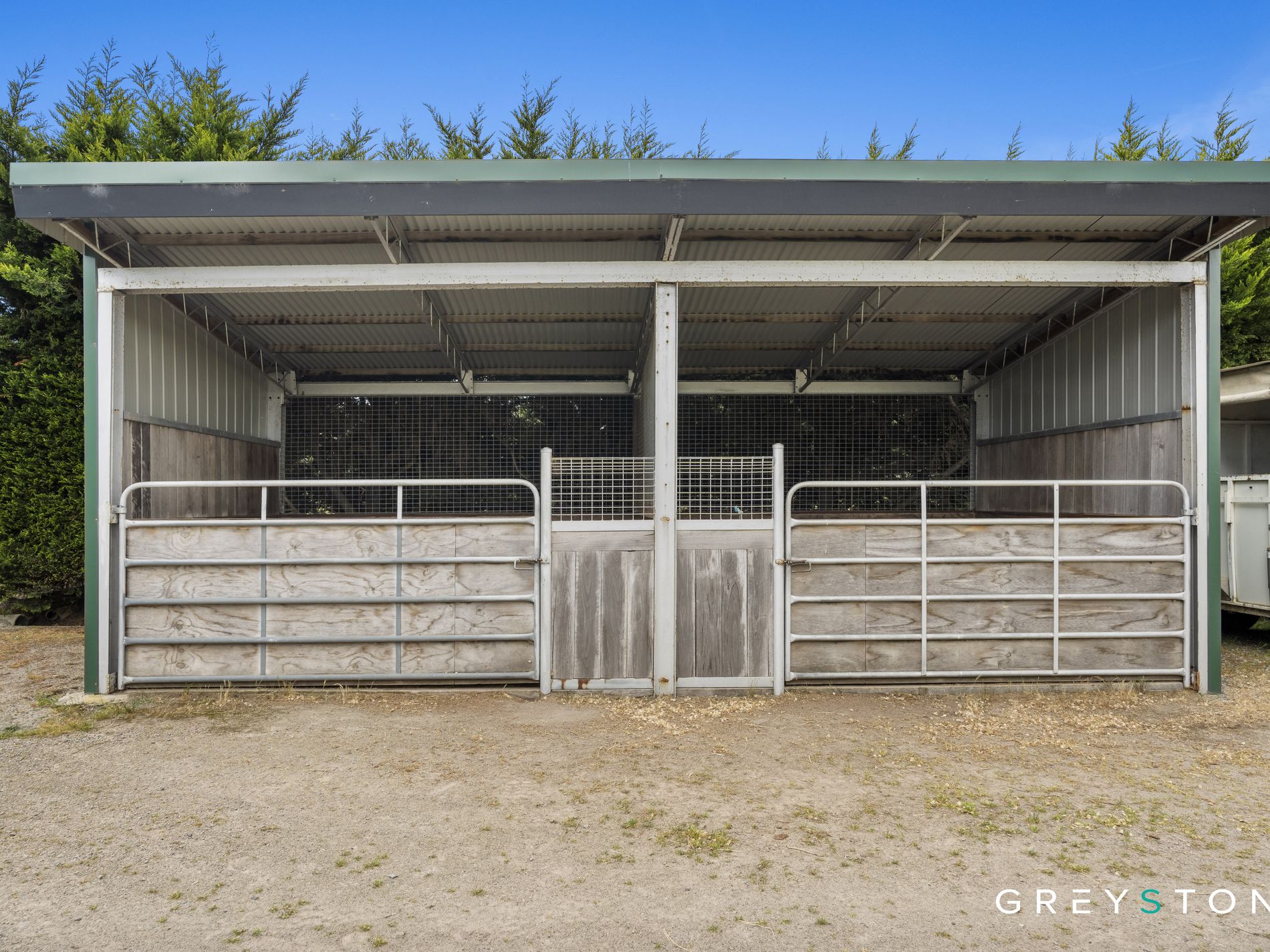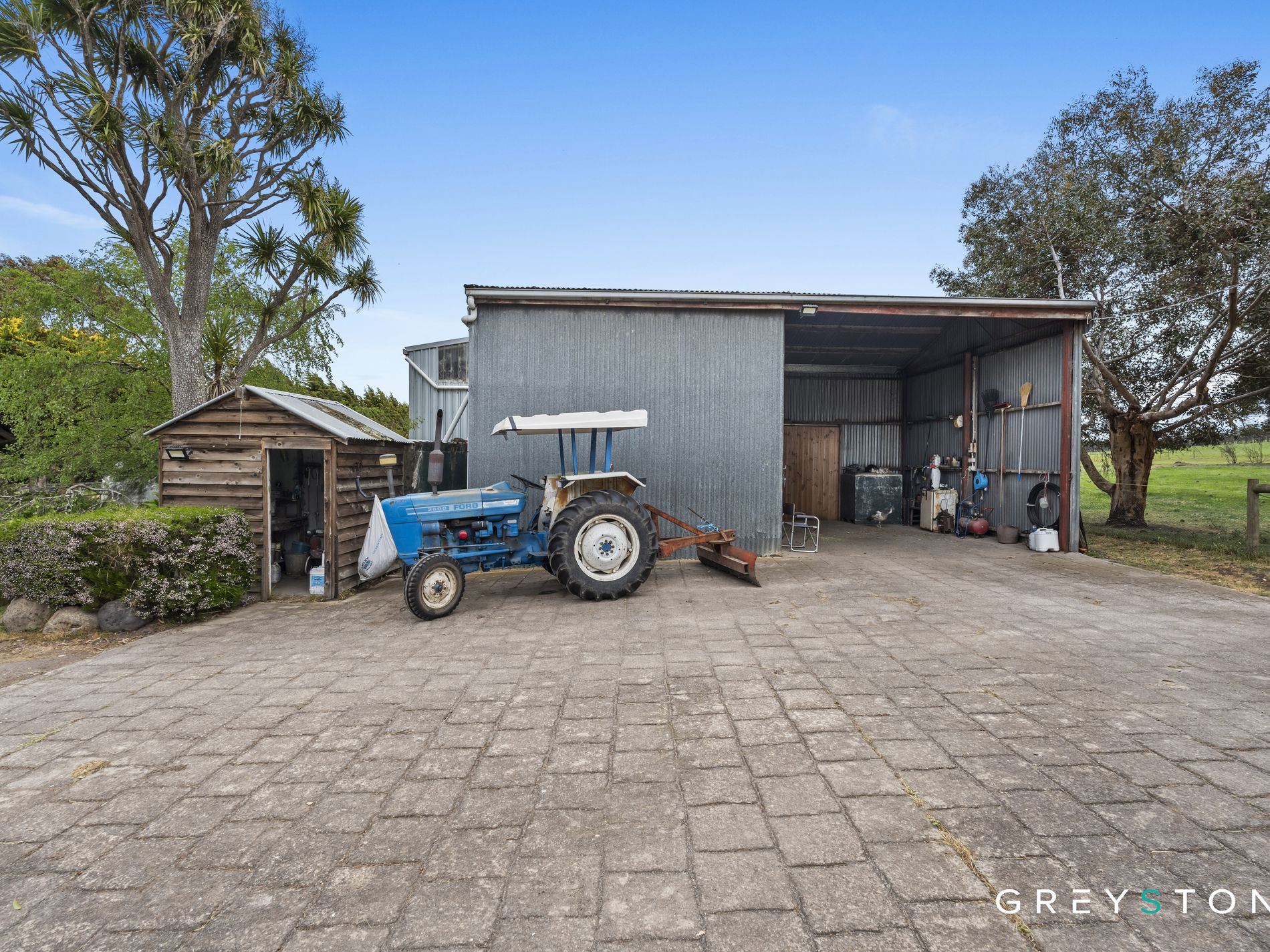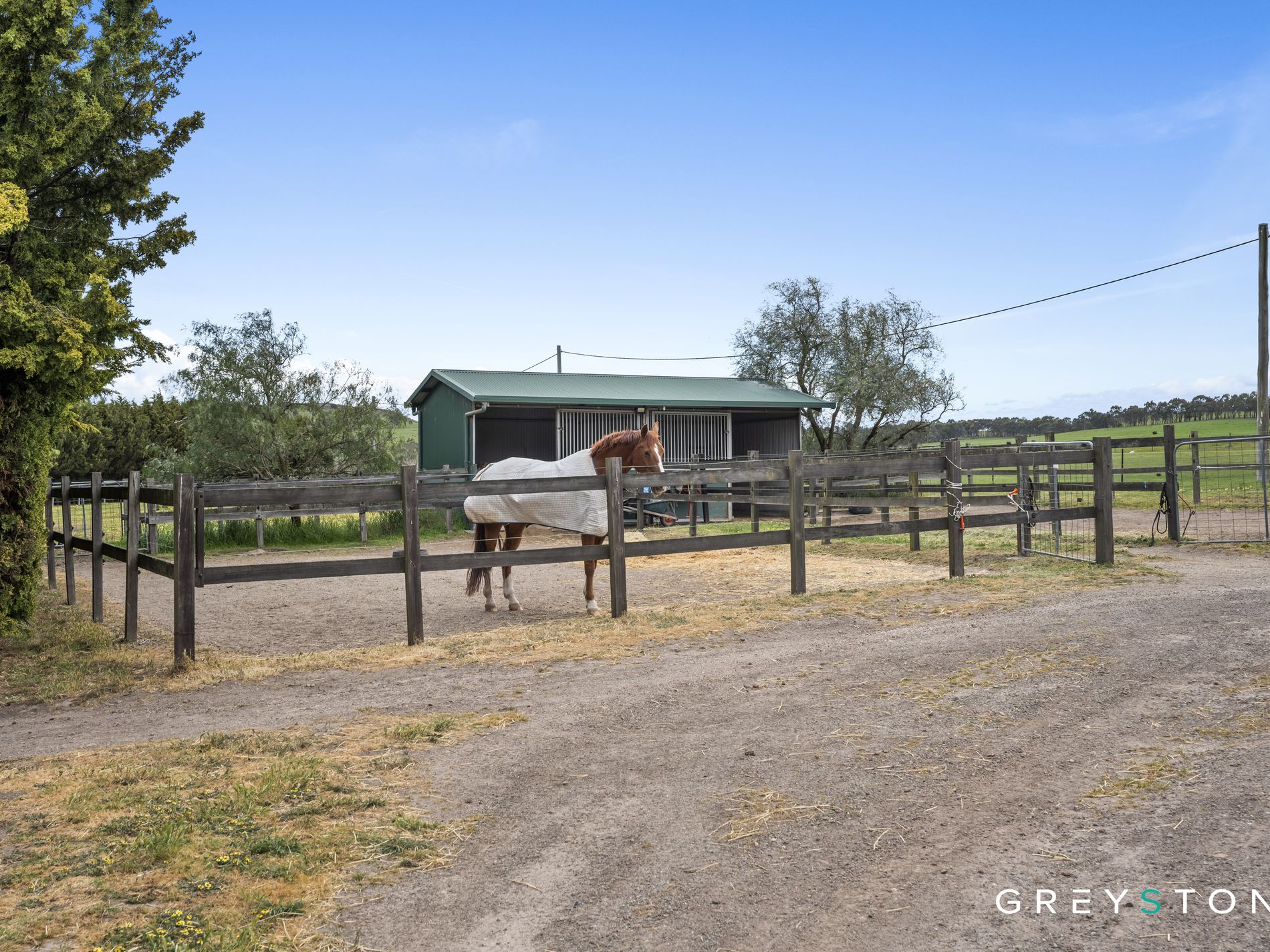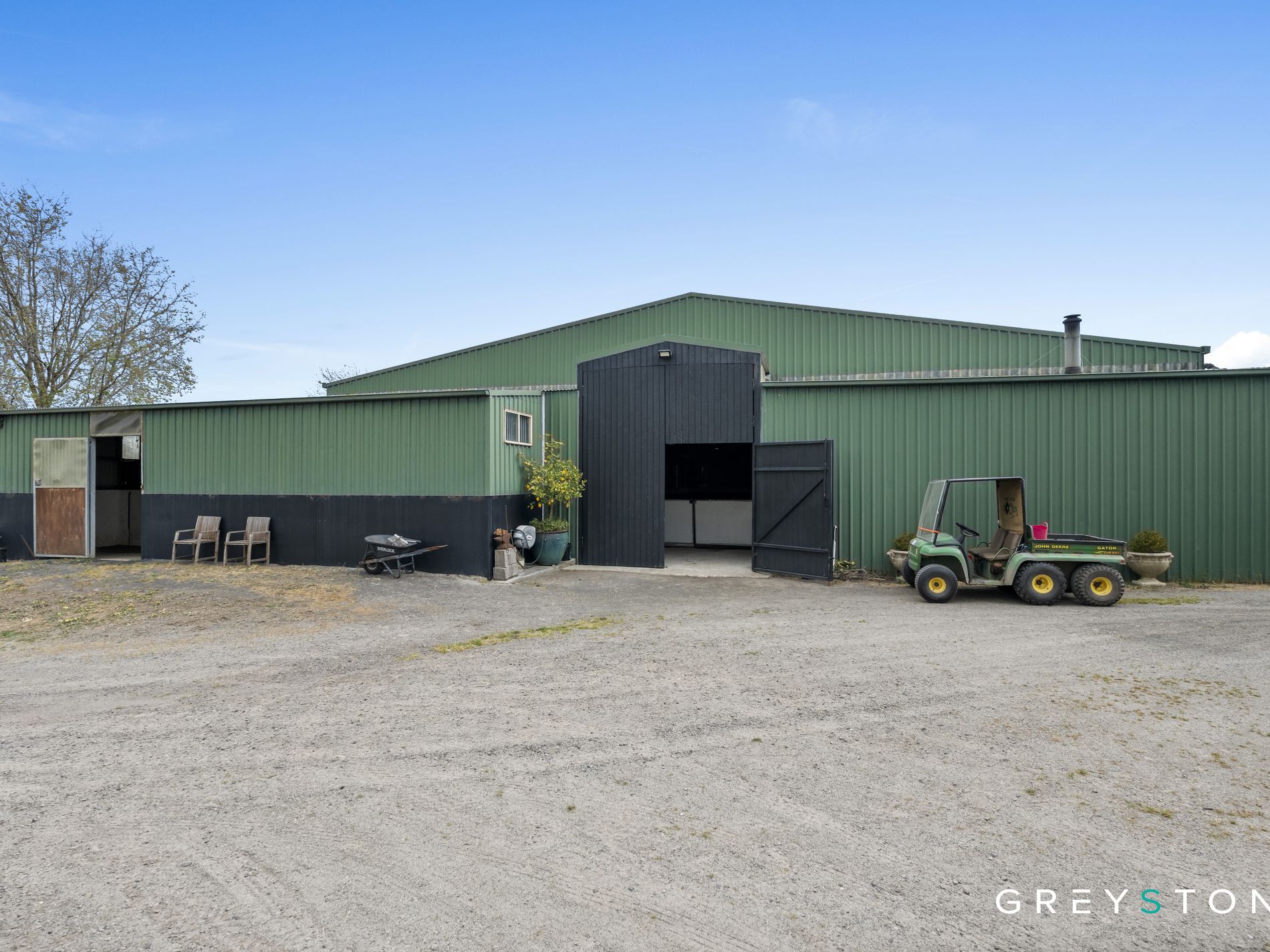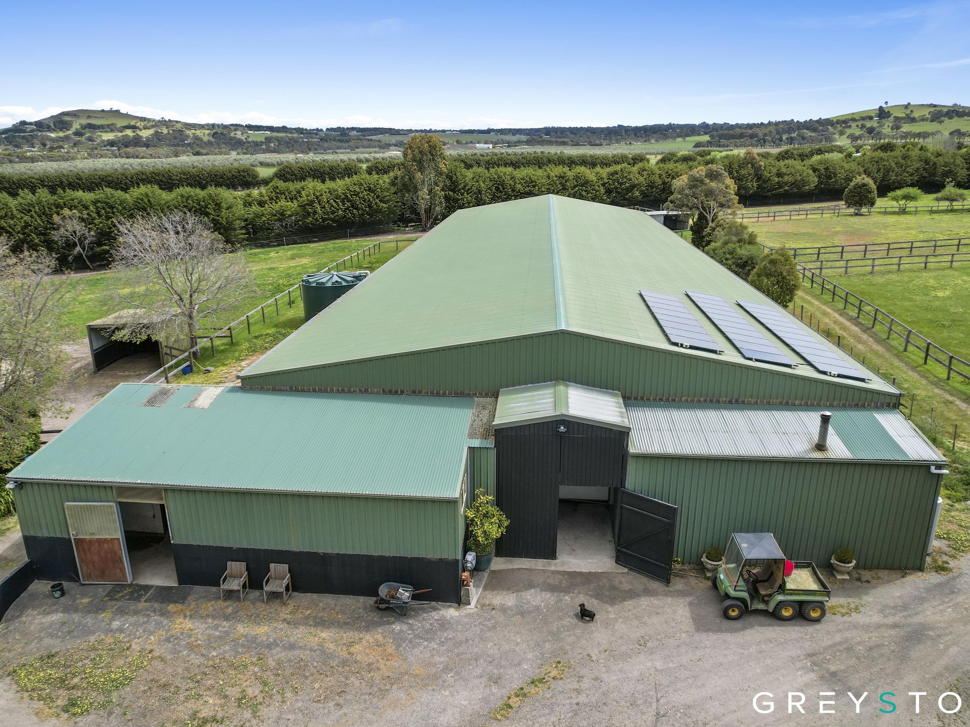 The equestrian facilities truly set this property apart from anything else currently available in the region, featuring world-class amenities that have supported a successful horse training and breeding operation for over 20 years. The Olympic-sized indoor arena provides year-round training capability regardless of weather conditions, while the equally impressive outdoor arena offers the space and surface quality demanded by serious equestrians. Seven well-appointed stables ensure comfortable accommodation for your horses, complemented by three substantial main paddocks and six smaller paddocks, each thoughtfully equipped with shelter boxes for livestock welfare. The professional round yard facilitates training and exercise routines, while the expansive, high-roofed machinery shed provides secure housing for trucks, tractors, floats, and agricultural equipment.